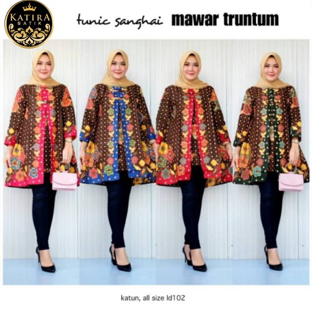 TUNIC SANGHAI MAWAR TRUNTUM TUNIK BATIK CEWEK TUNIC BATIK WANITA SERAGAM BATIK KERJA BATIK KANTOR